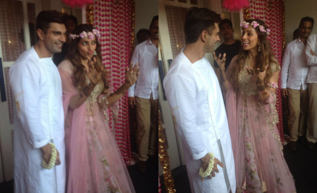 Bipasha Basu and Karan Singh Grover's wedding festivities have started and we are totally adoring it! Recently, the group of the to-be-spouse completed a little puja function to check the start of the festivals took after by a Mehndi service held today and the photos from both these festivals have advanced toward the web. With within picture skimming around the online networking, we got the two adoration feathered creatures connecting with their kin and media, post the Mehndi service.