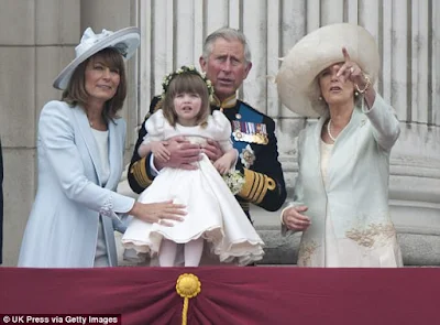 Laura with Princes William and Harry leaving the Guidhall in Windsor after Charles and Camilla's wedding